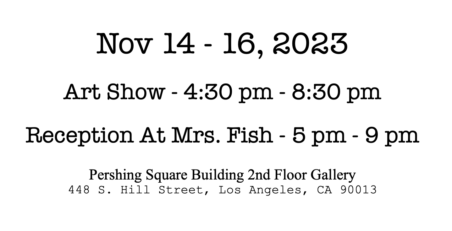 Presented by Pershing Square Building and Mrs. Fish Japanese Restaurant and Whiskey Bar GET TICKETS For November show Featuring 40+ Artists! Champagne flows all night! Unique artisan vendors at the Bazaar Reception at Mrs. Fish: Drinks, Sushi, & Vibes Tickets Only $10 - access to Art show and Reception newsletter Sign Up Application Artist Sign Up Application Click on the image below to find out more about: